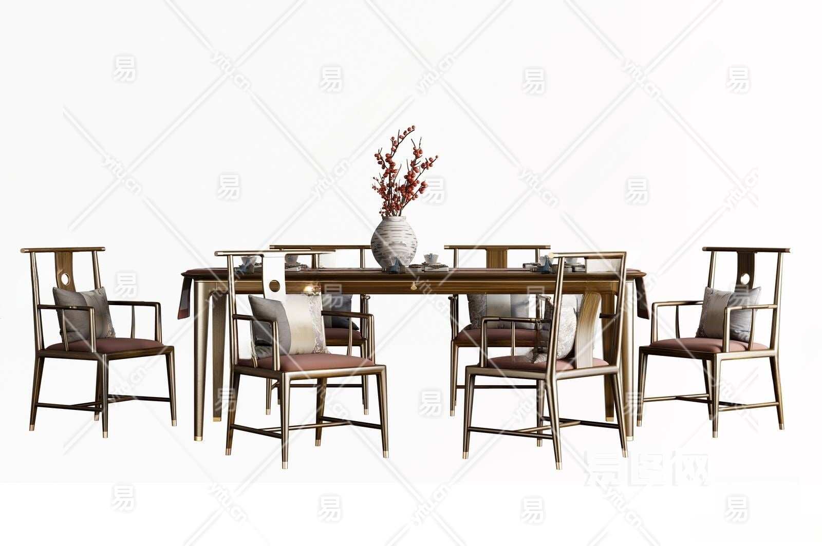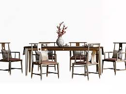 新中式餐桌椅组合3D模型下载