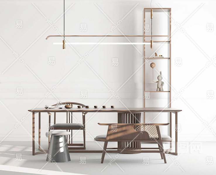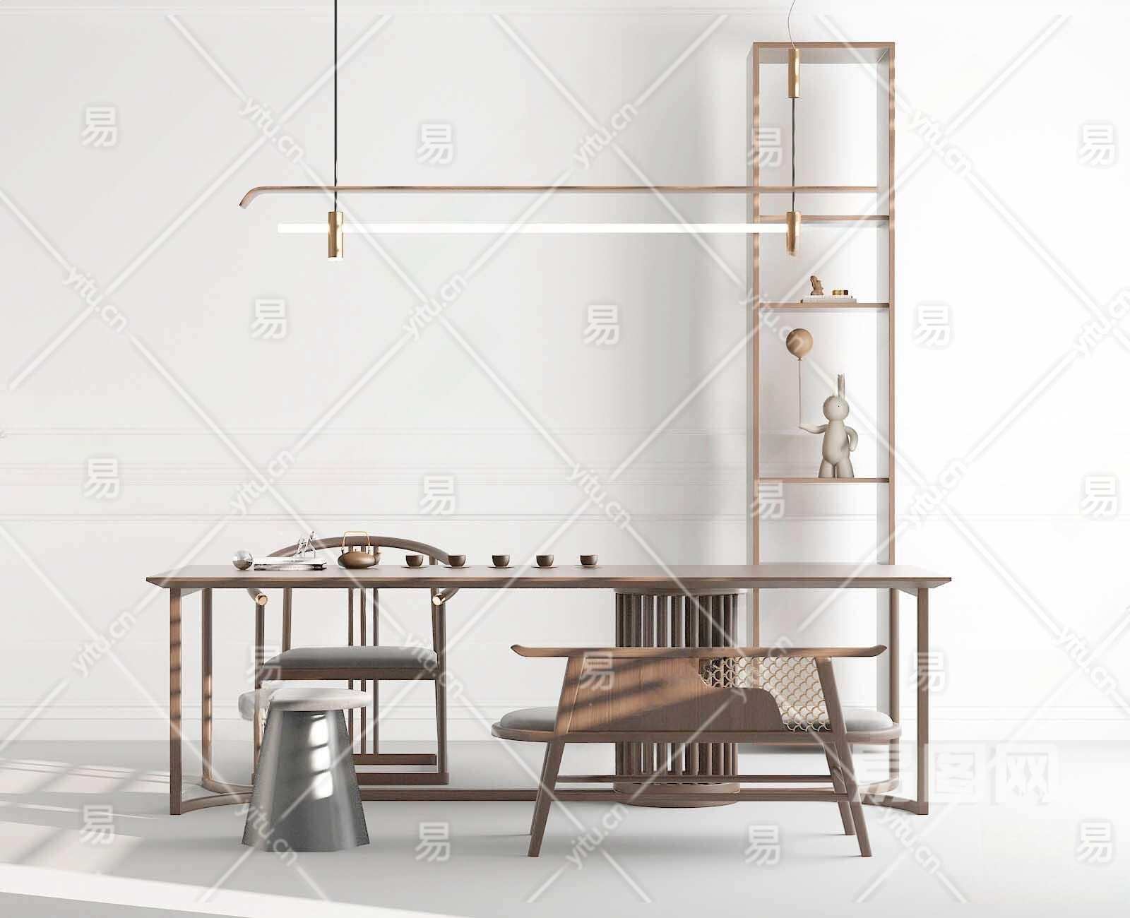 现代茶桌椅组合3D模型下载
