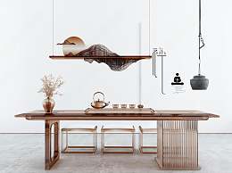 新中式茶桌椅组合3D模型下载