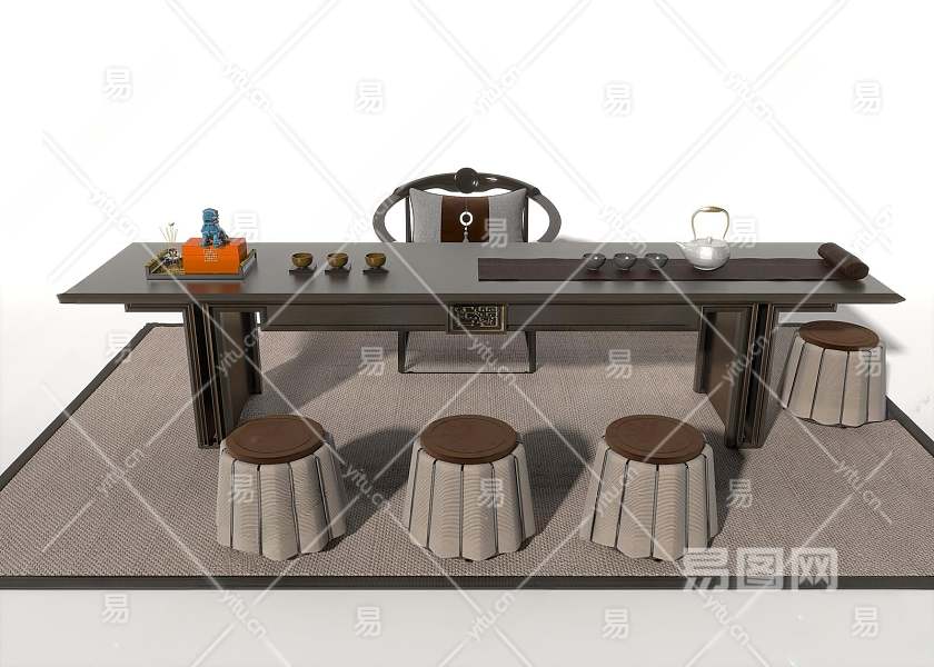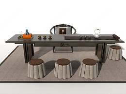 新中式茶桌椅组合3D模型下载