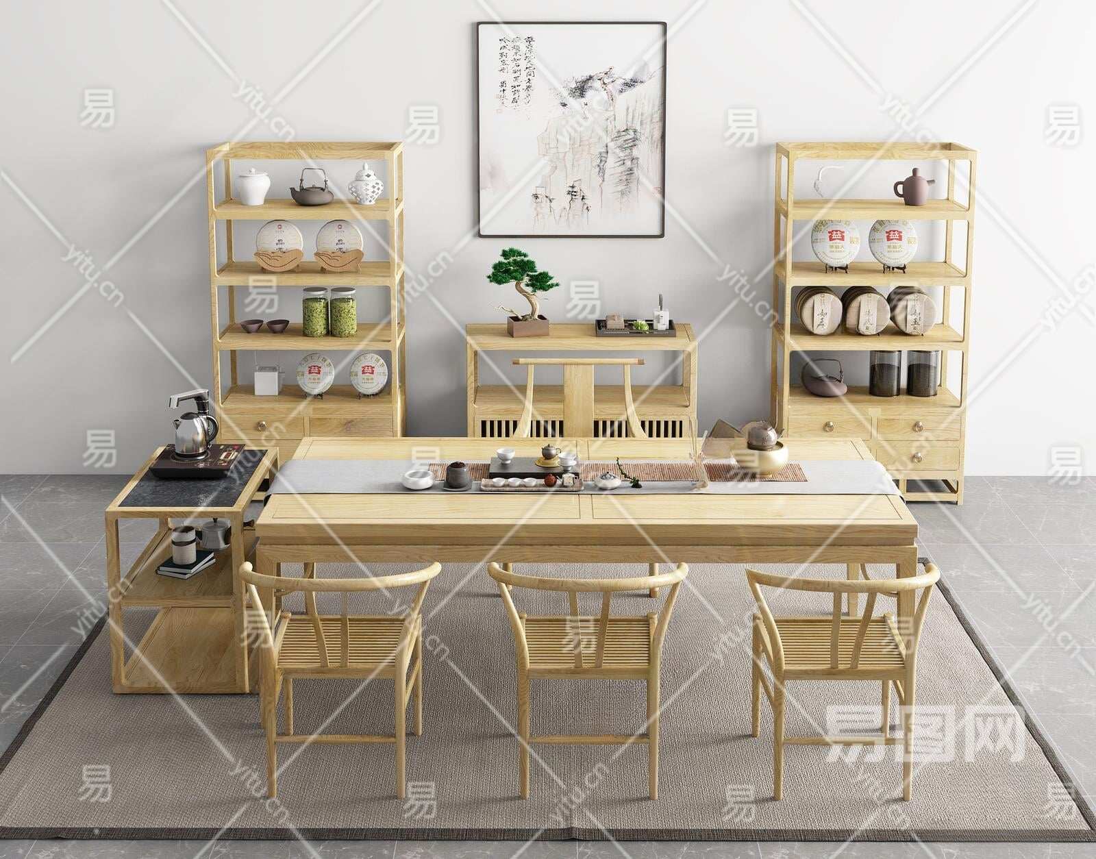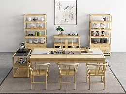 新中式茶桌椅组合3D模型下载
