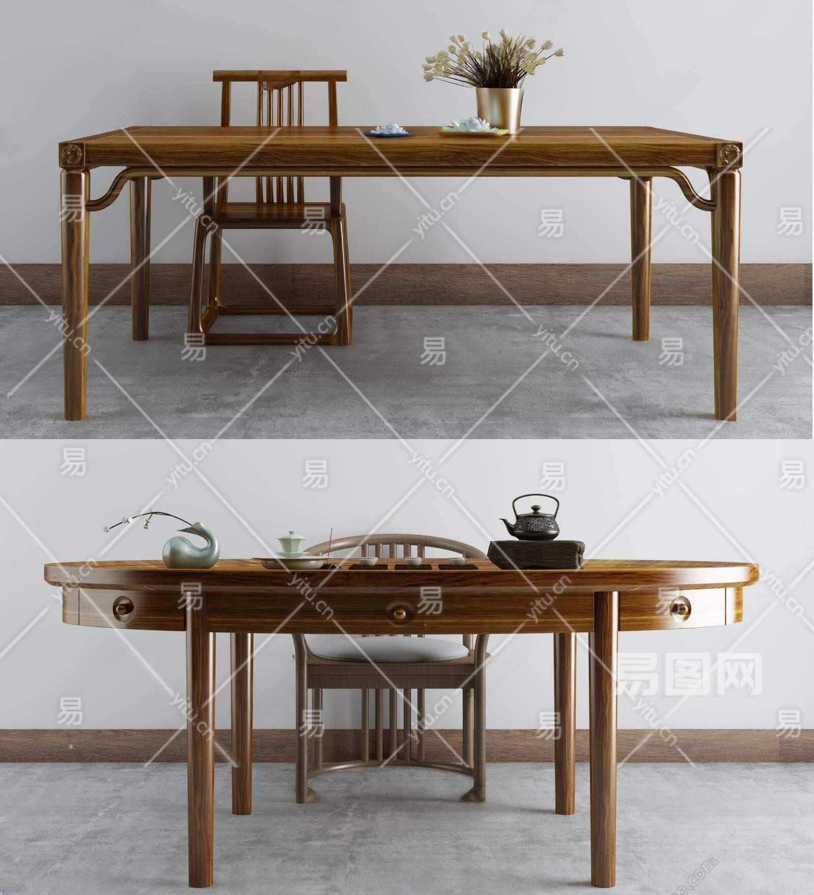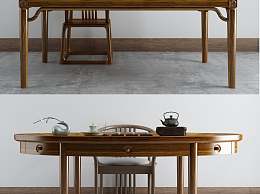 新中式禅意茶桌椅3D模型下载