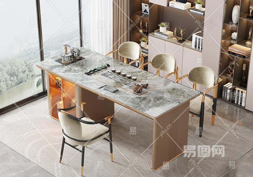 现代茶桌椅3D模型下载