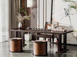 新中式茶桌椅组合3D模型下载