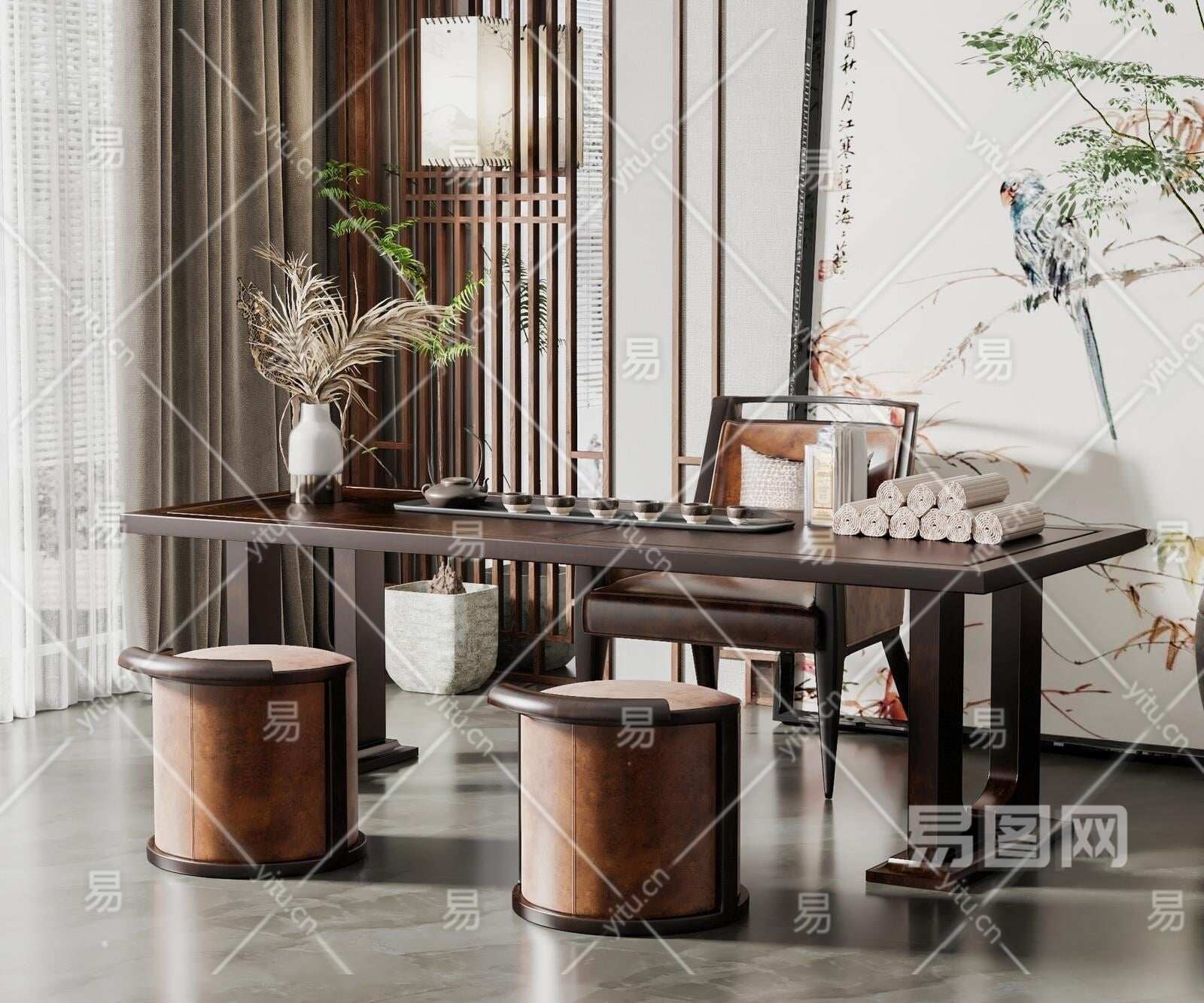当前的位置:首页 > 3D模型 > 桌椅组合 > 茶桌椅组合 > 新中式茶桌椅组合3D模型下载
