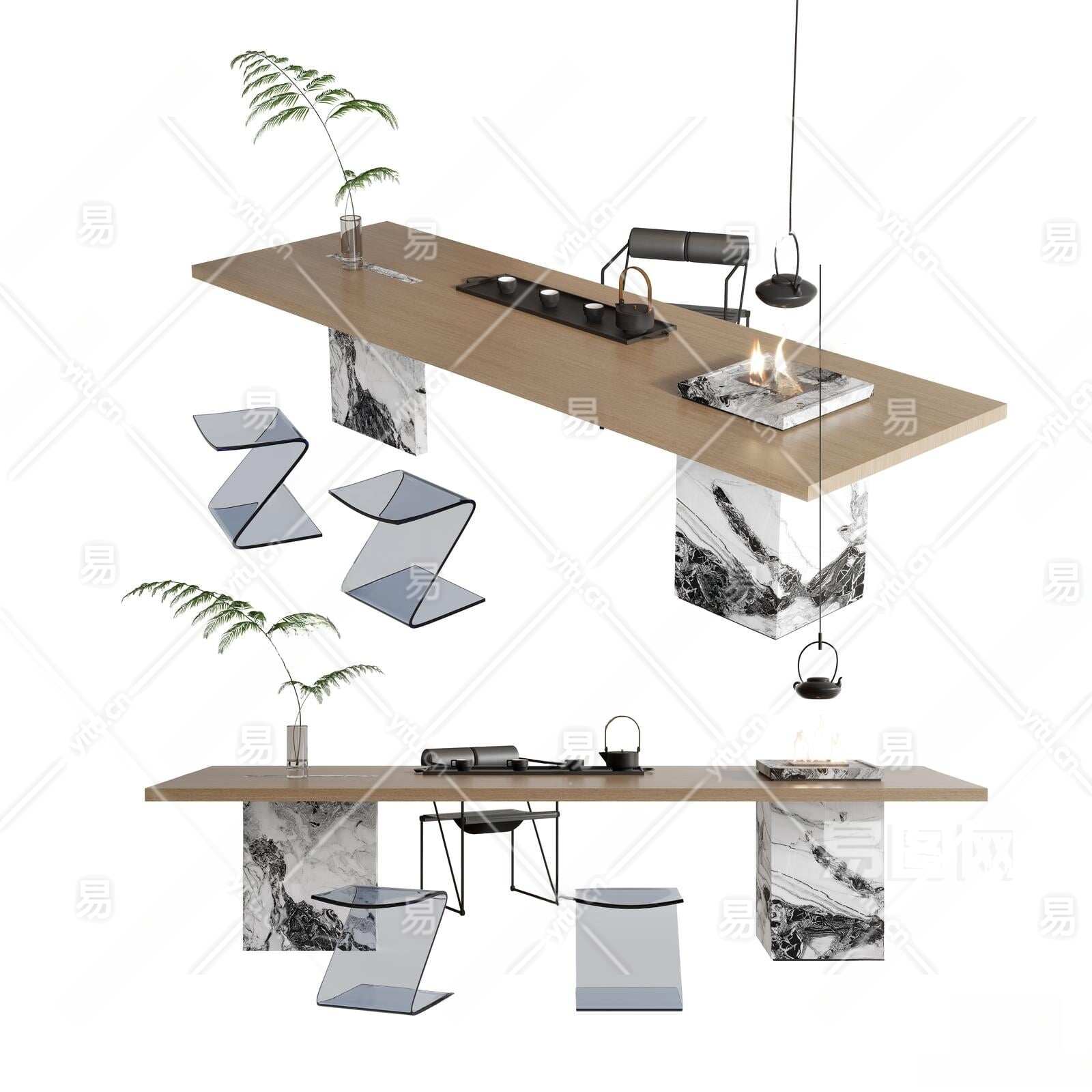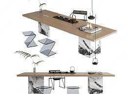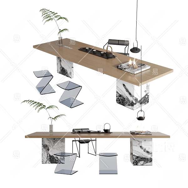 现代茶桌椅组合3D模型下载
