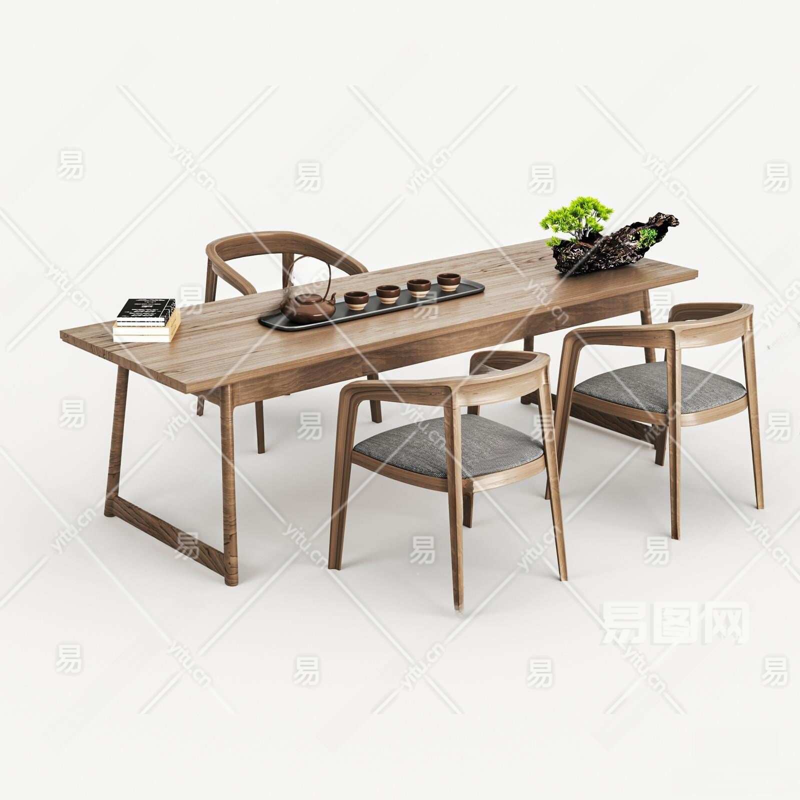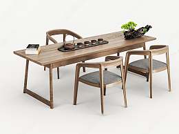 新中式茶桌椅组合3D模型下载