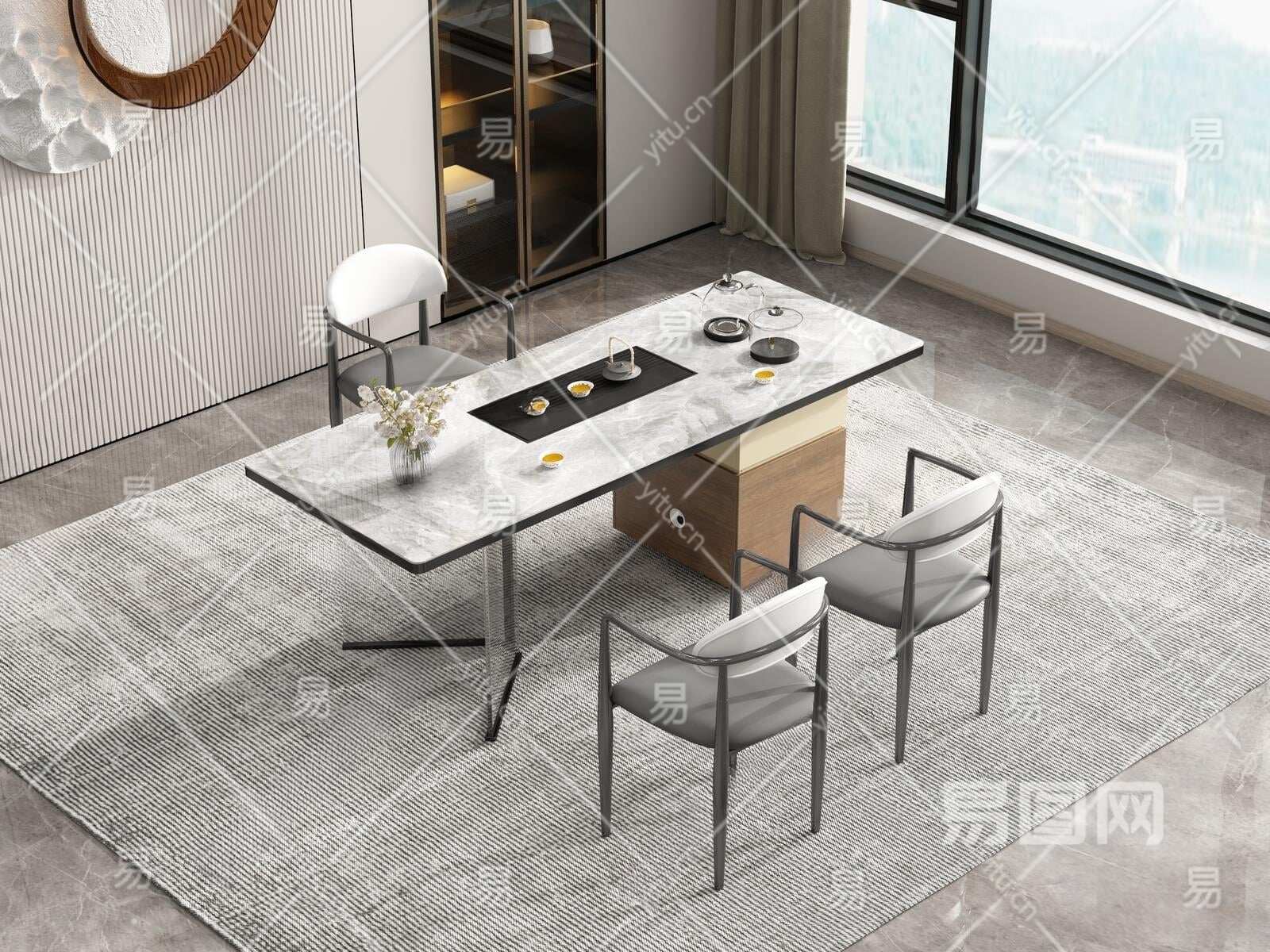 现代茶桌椅组合3D模型下载