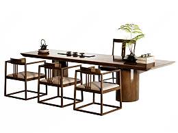 新中式茶桌椅组合3D模型下载