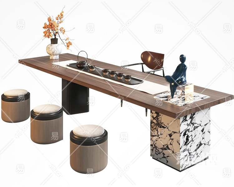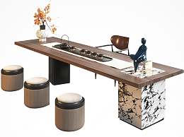 新中式茶桌椅组合3D模型下载