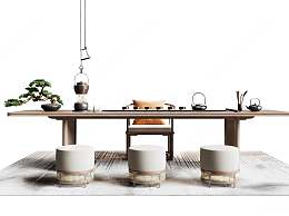新中式茶桌椅组合3D模型下载