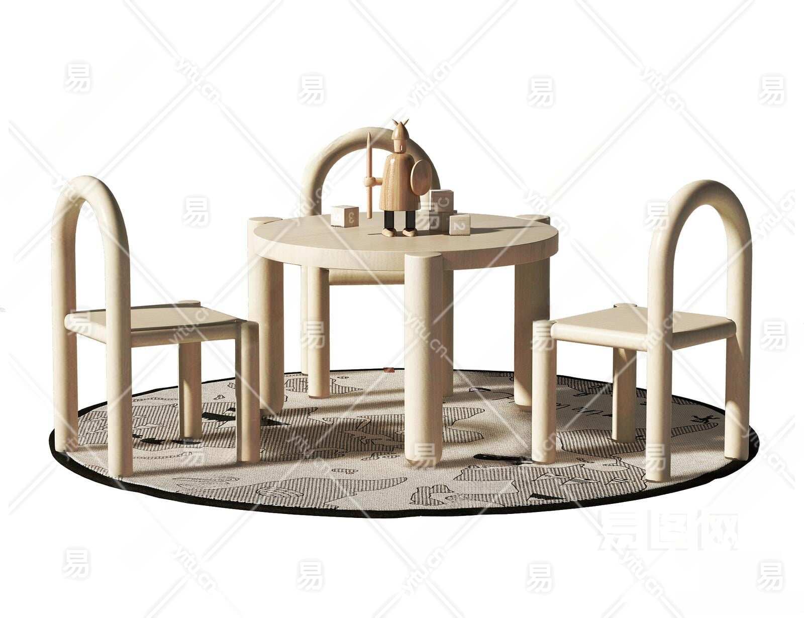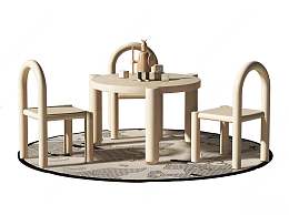 现代儿童桌椅组合3D模型下载