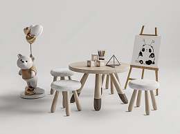 现代儿童桌椅组合3D模型下载