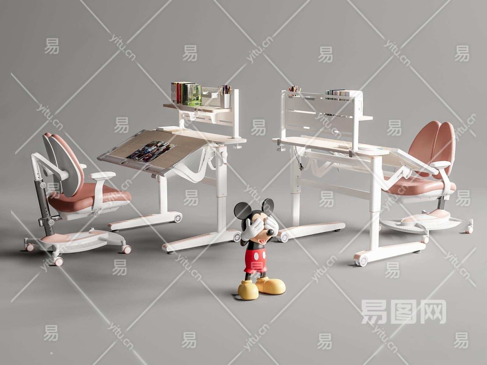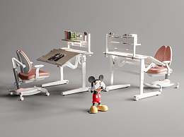 现代儿童学习桌椅3D模型下载