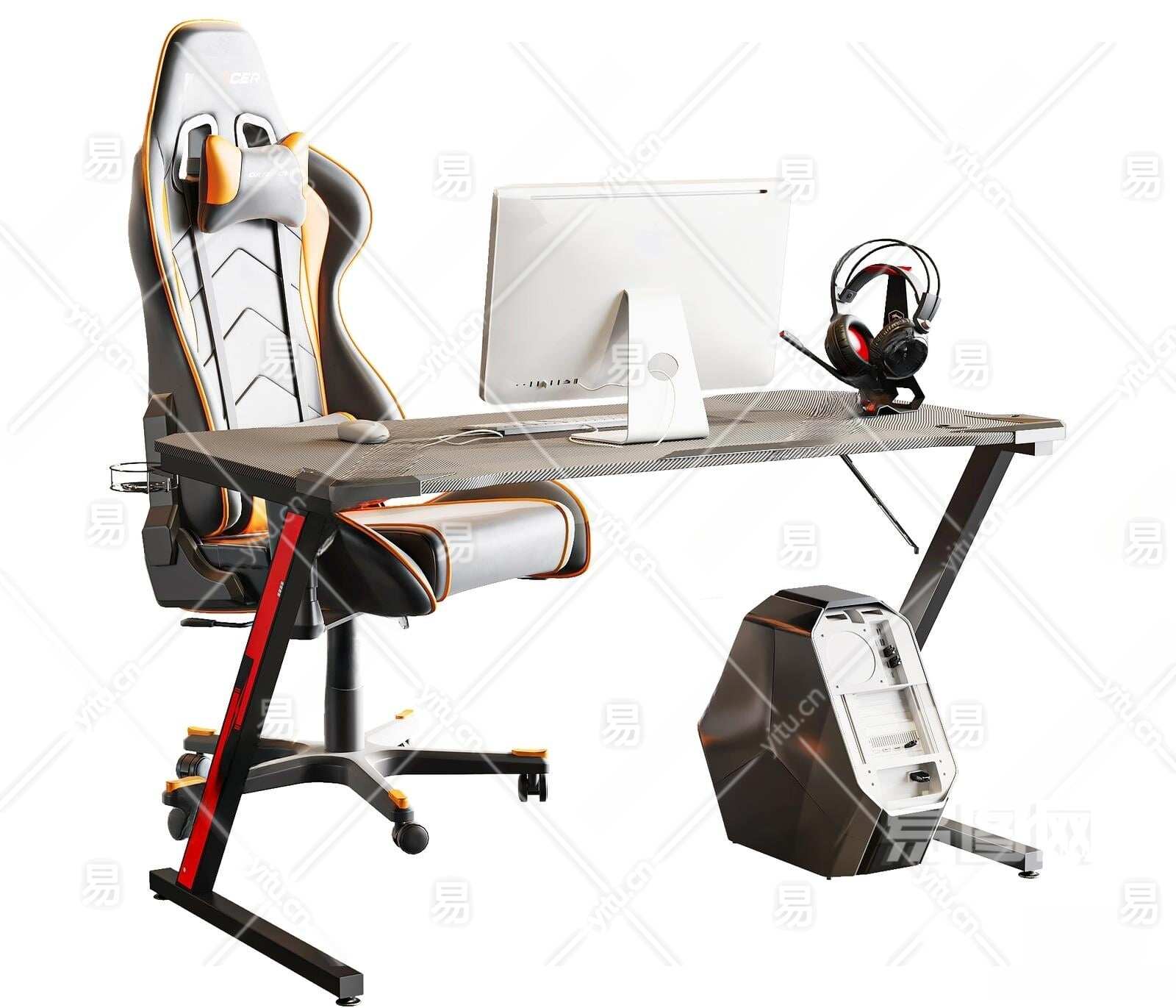 现代游戏桌椅组合3D模型下载