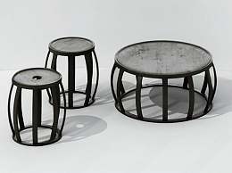 现代铁艺桌椅组合3D模型下载