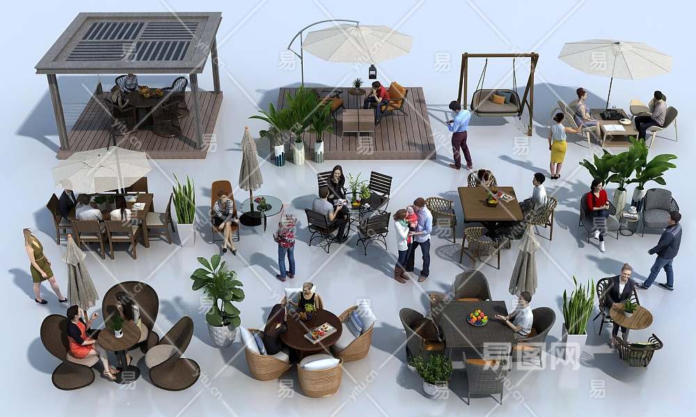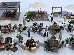 现代户外桌椅组合3D模型下载