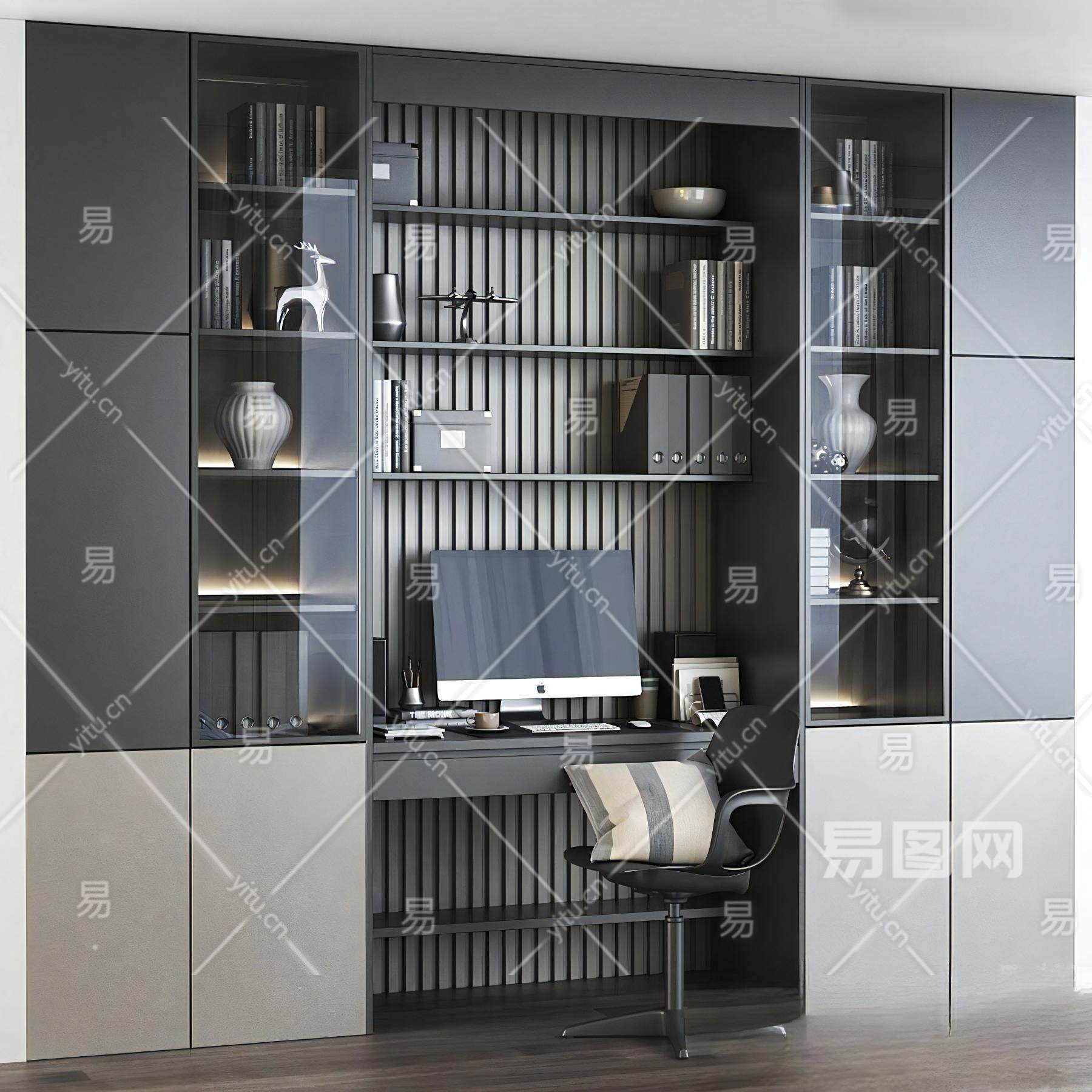 当前的位置:首页 > 3D模型 > 桌椅组合 > 书桌椅组合 > 现代一体式书柜书桌椅组合