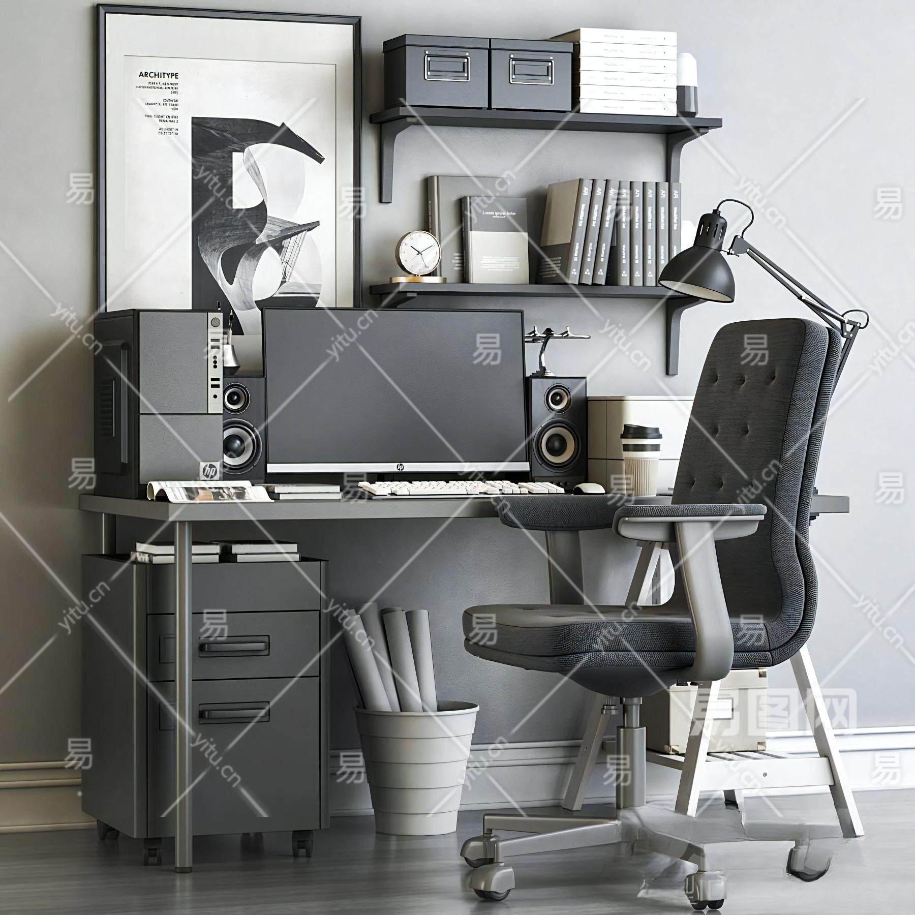 当前的位置:首页 > 3D模型 > 桌椅组合 > 书桌椅组合 > 现代黑色电脑书桌椅