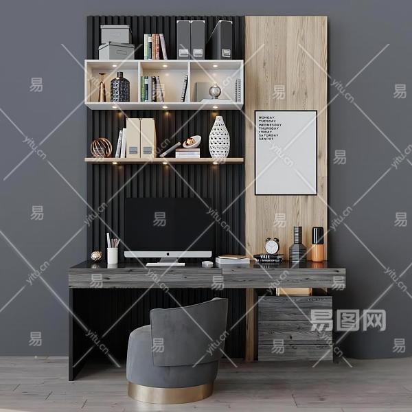 现代书桌椅组合-9