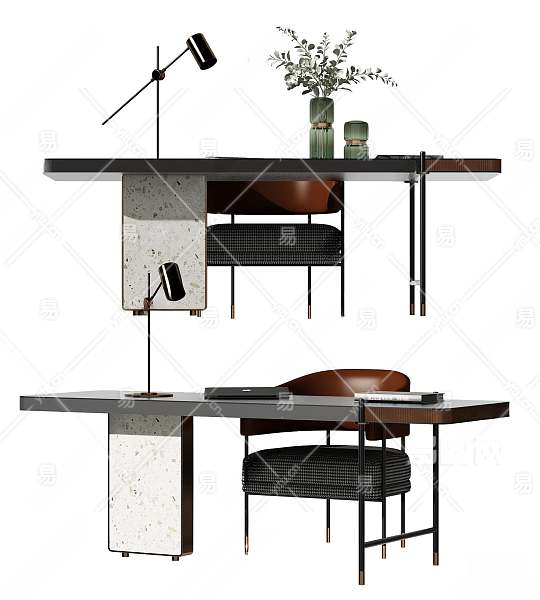 现代书桌椅组合3D模型下载