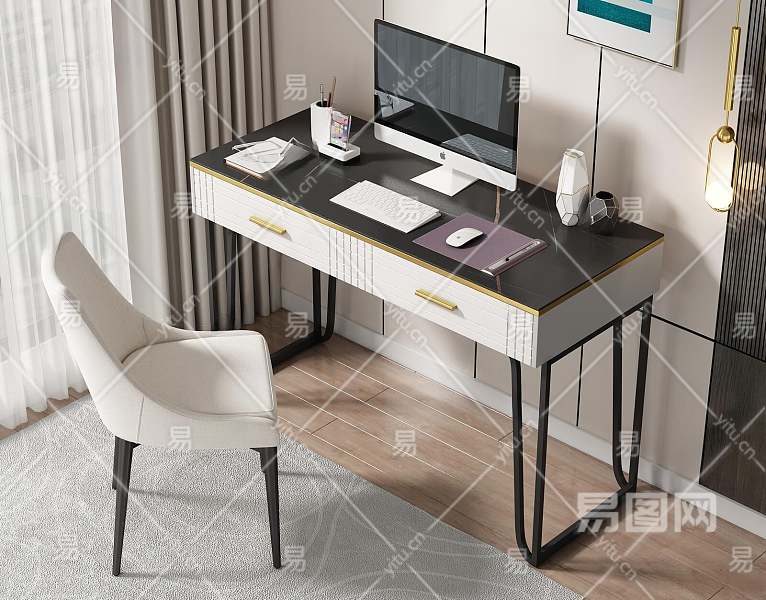 现代书桌椅组合3D模型下载
