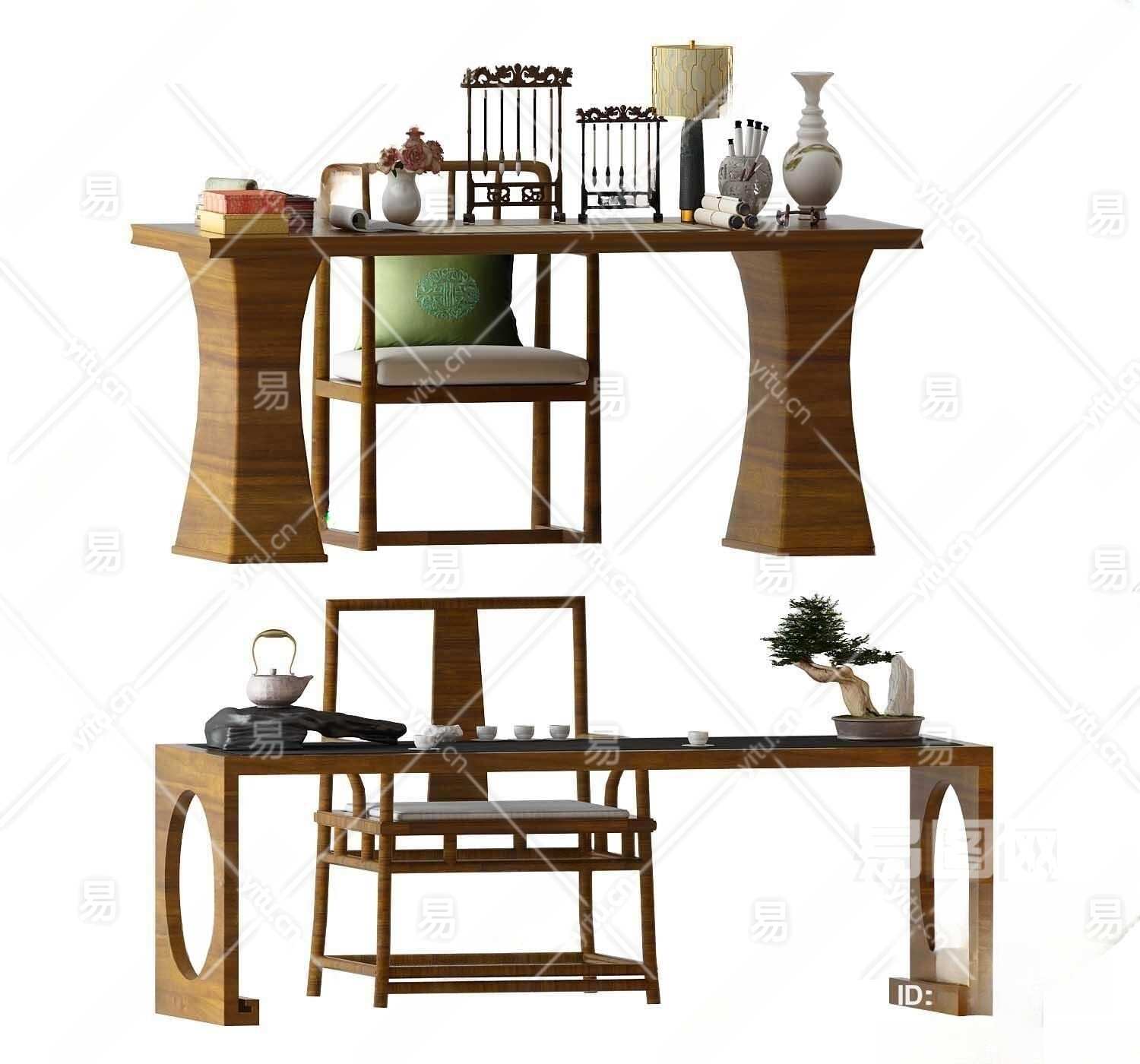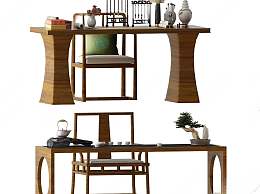 中式书桌椅组合3D模型下载