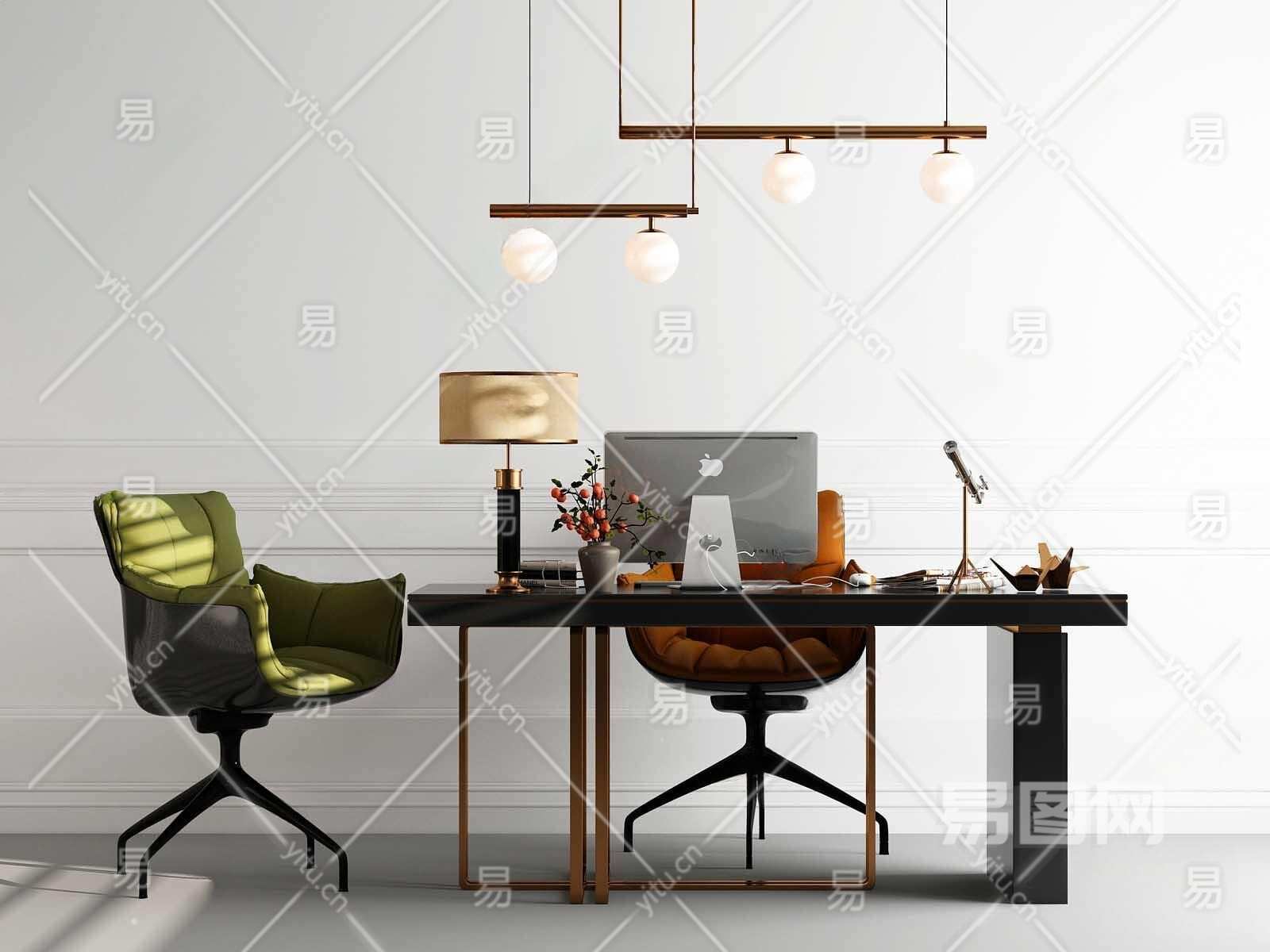 现代书桌椅组合3D模型下载