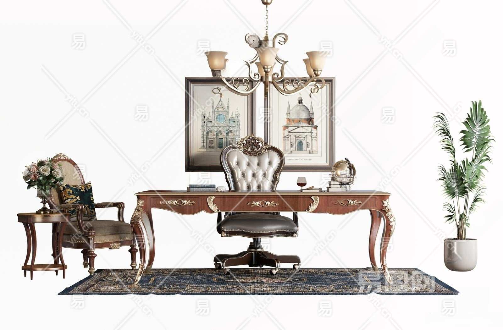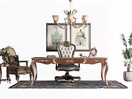 美式书桌椅组合3D模型下载
