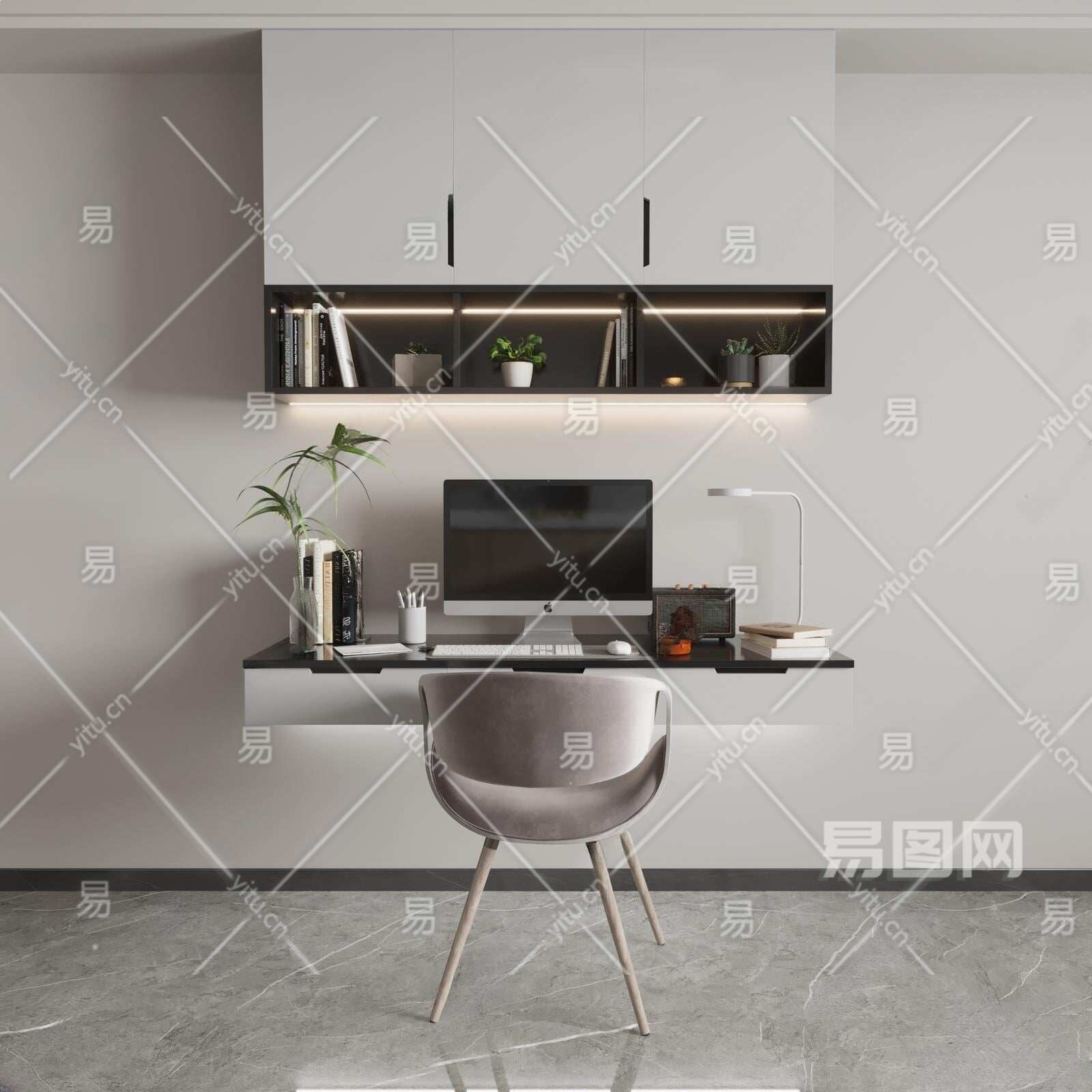 现代书桌椅组合3D模型下载