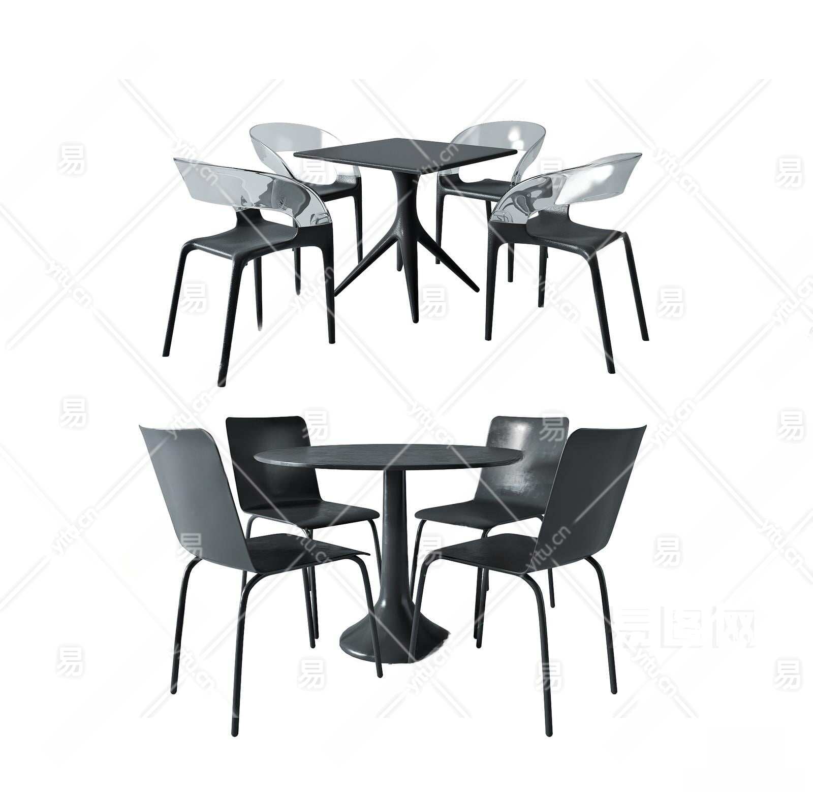 现代休闲桌椅组合3D模型下载