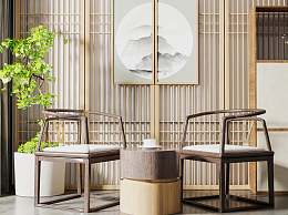 新中式休闲椅组合3D模型下载