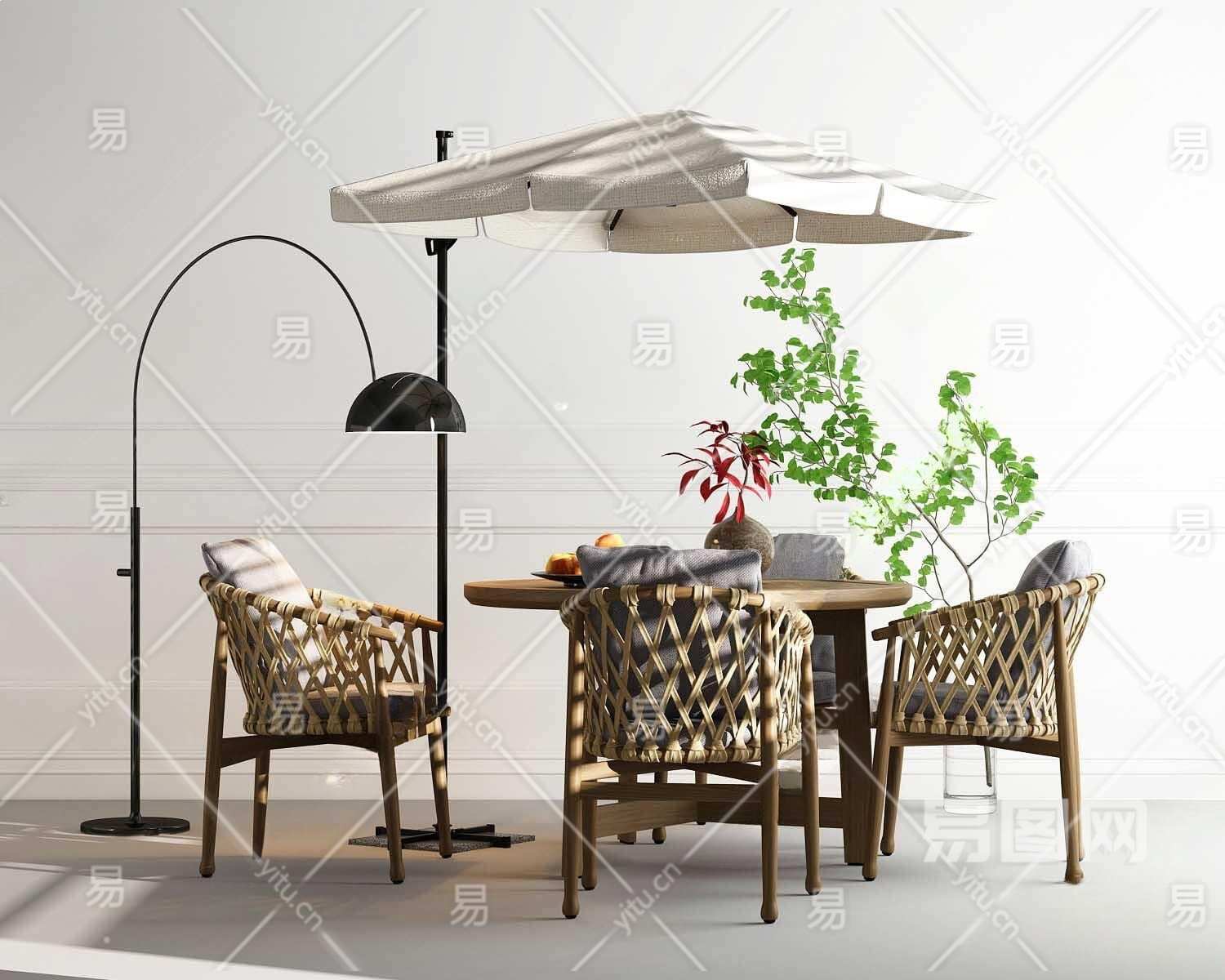 现代户外休闲桌椅组合3D模型下载