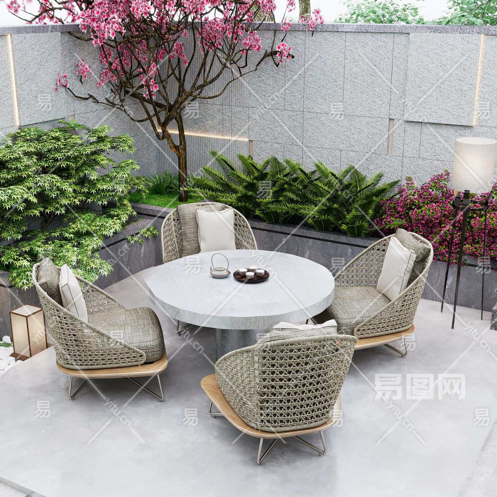 新中式户外休闲桌椅组合3D模型下载