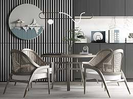 新中式休闲桌椅组合3D模型下载