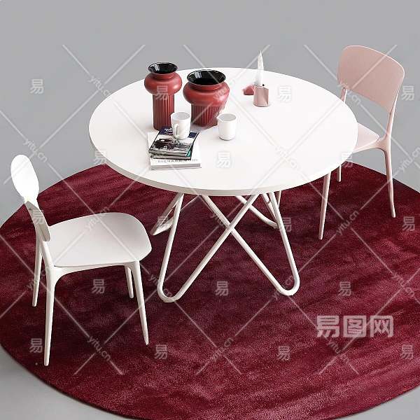 现代圆形休闲桌椅组合3D模型下载