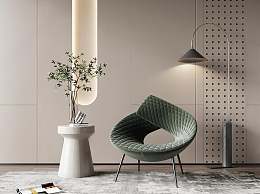 现代休闲椅角几组合3D模型下载