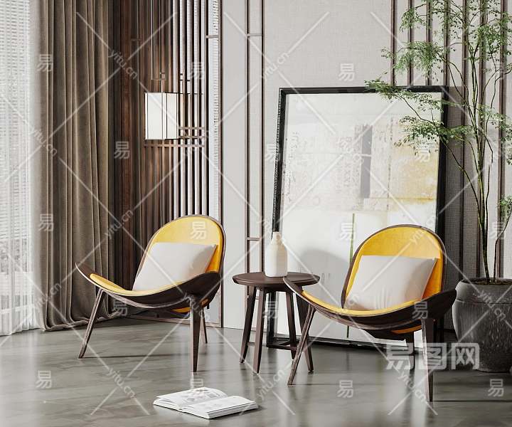 新中式休闲椅组合3D模型下载