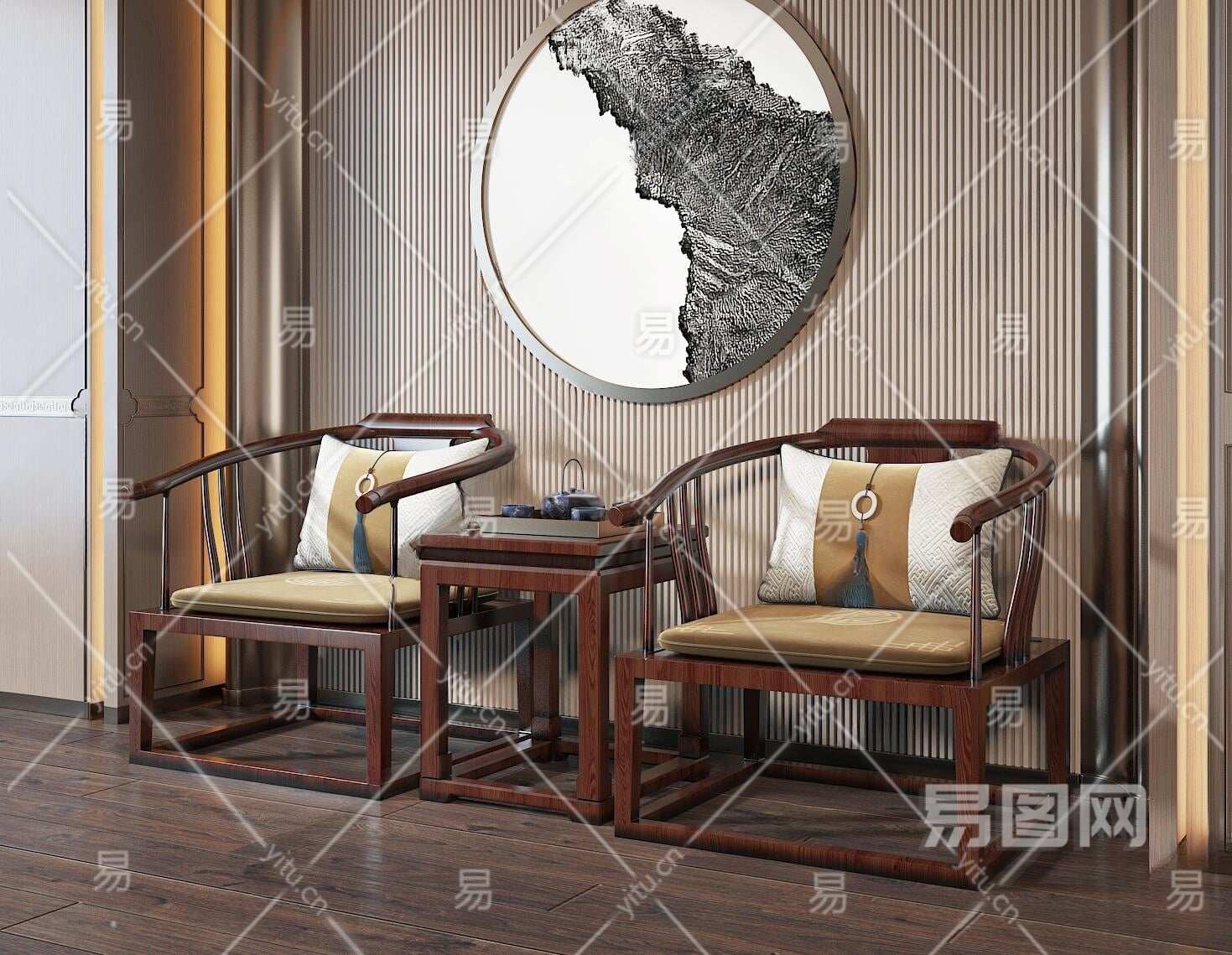 当前的位置:首页 > 3D模型 > 桌椅组合 > 休闲桌椅组合 > 新中式休闲椅3D模型下载