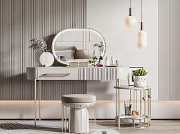 现代妆台妆椅组合3D模型下载