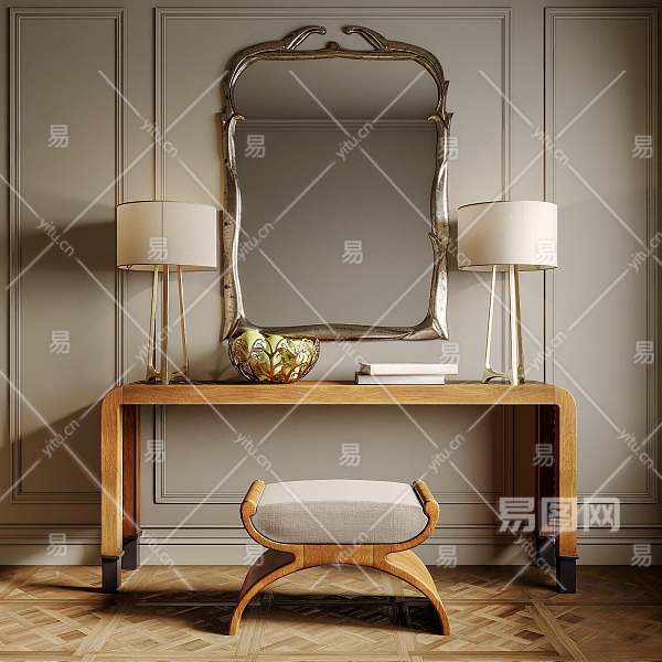 新古典端妆台妆椅组合3D模型下载
