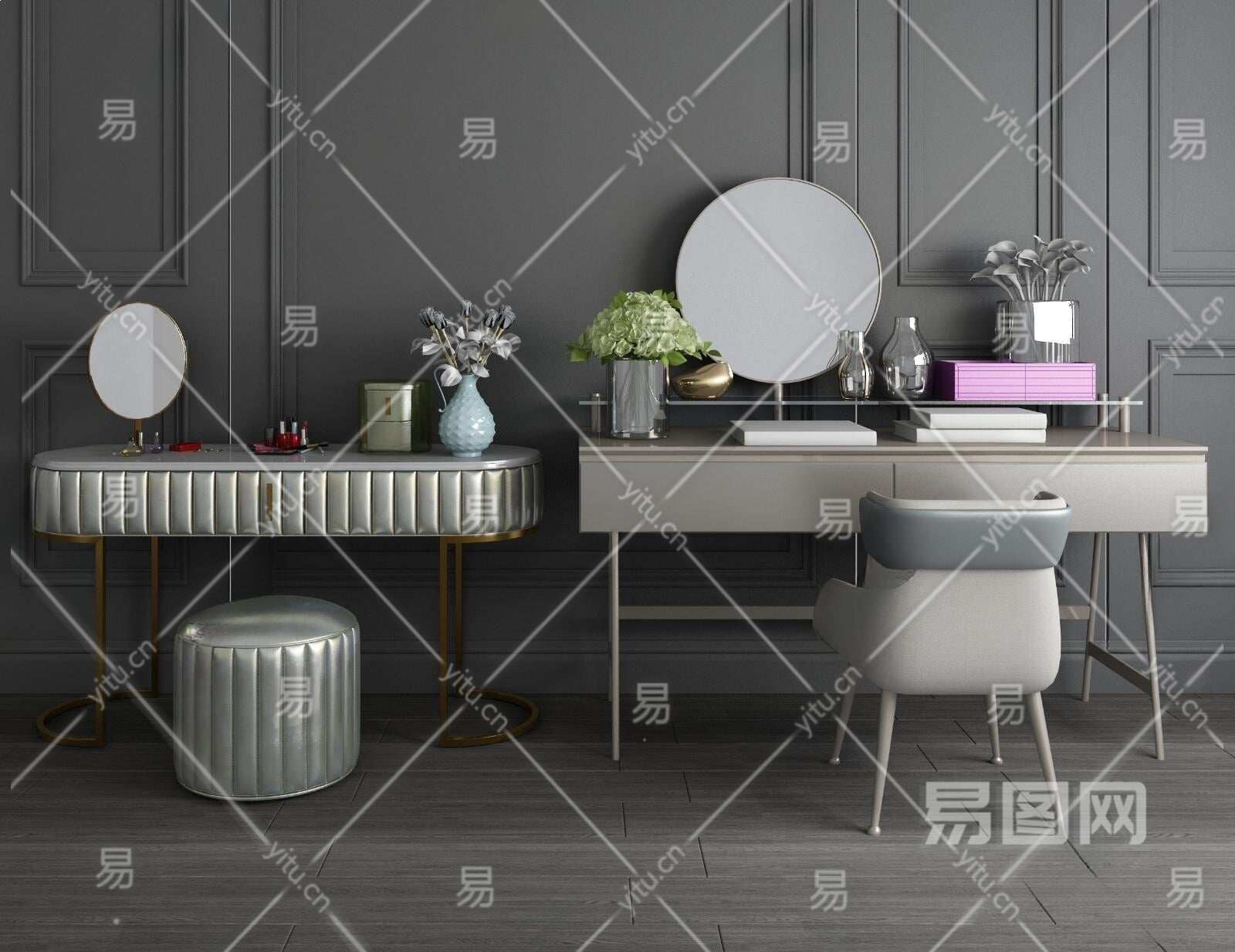 简欧梳妆台3D模型下载