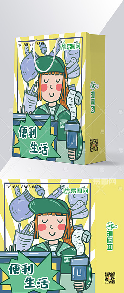 当前的位置:首页 > 广告设计 > 包装 > 服务包装 > 便利店卡通手提袋店员收款扁平包装