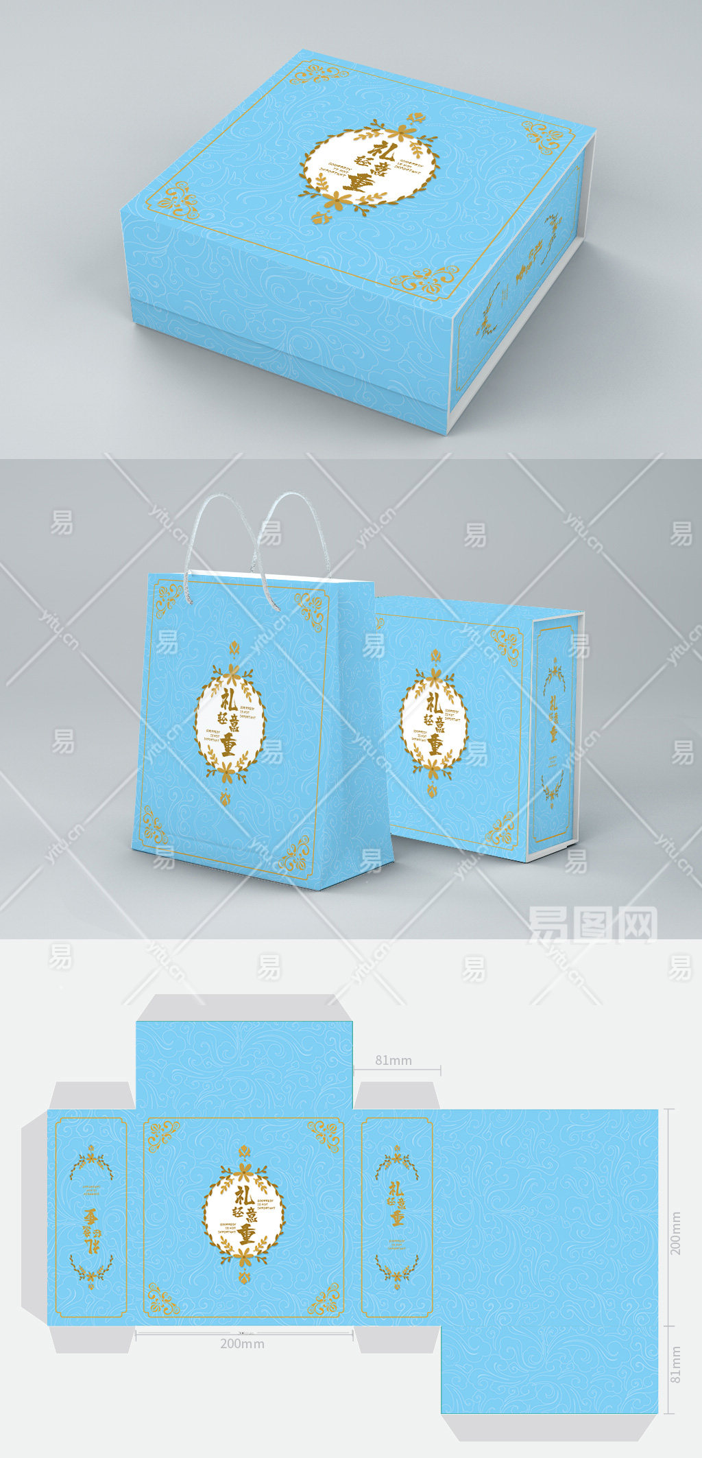 当前的位置:首页 > 广告设计 > 包装 > 服务包装 > 唯美伴手礼包装盒袋子蓝色金色花纹中国风