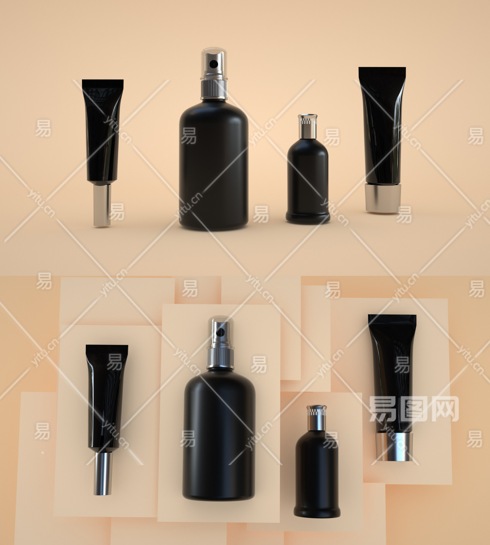 高端大气黑色化妆品包装模型