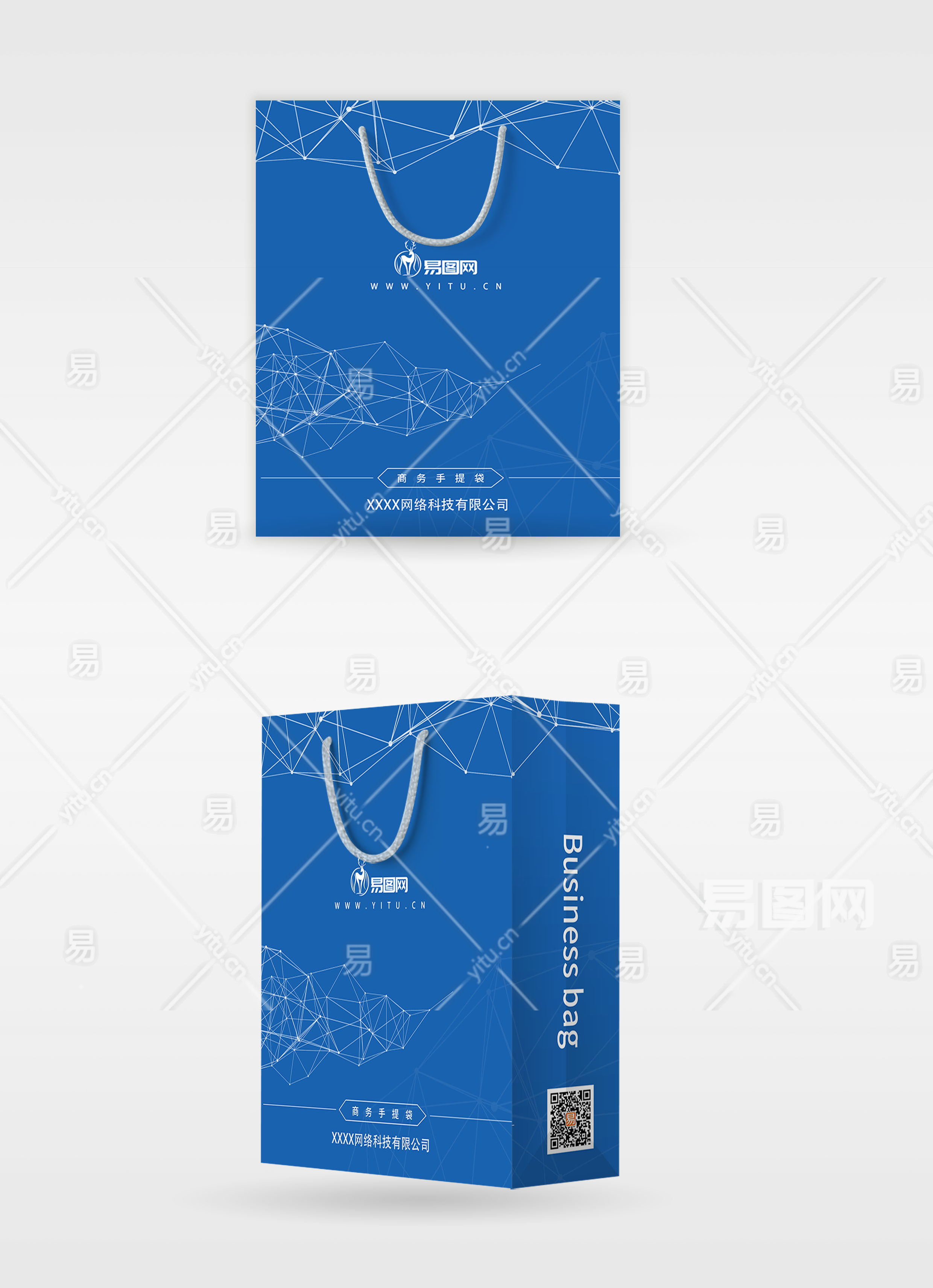 当前的位置:首页 > 广告设计 > 包装 > 商业包装 > 蓝色简约科技有限公司商业手提袋