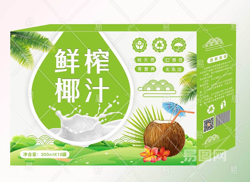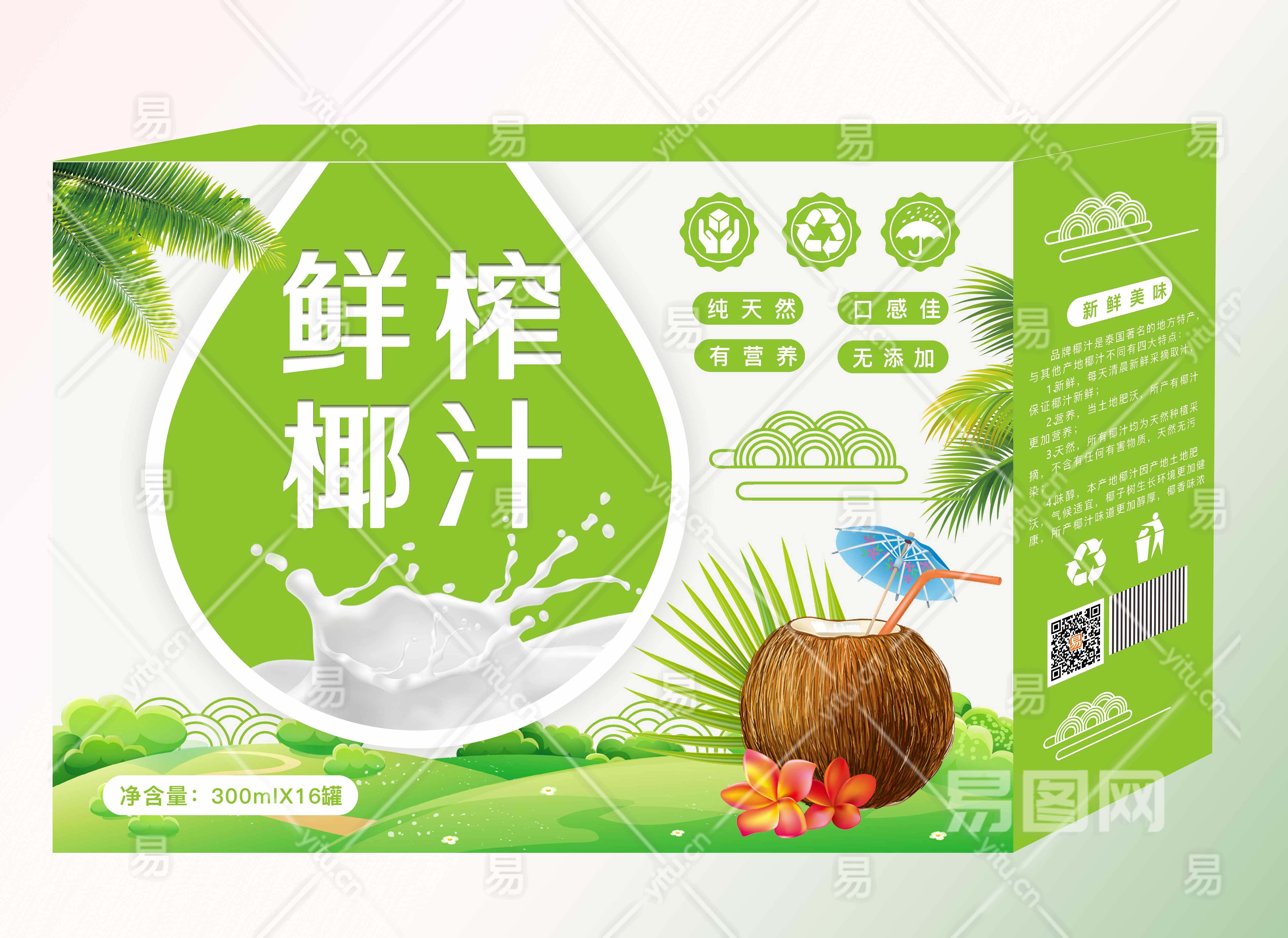 当前的位置:首页 > 广告设计 > 包装 > 饮料包装 > 绿色草地椰子插画鲜榨椰汁果汁饮料包装果汁包装盒