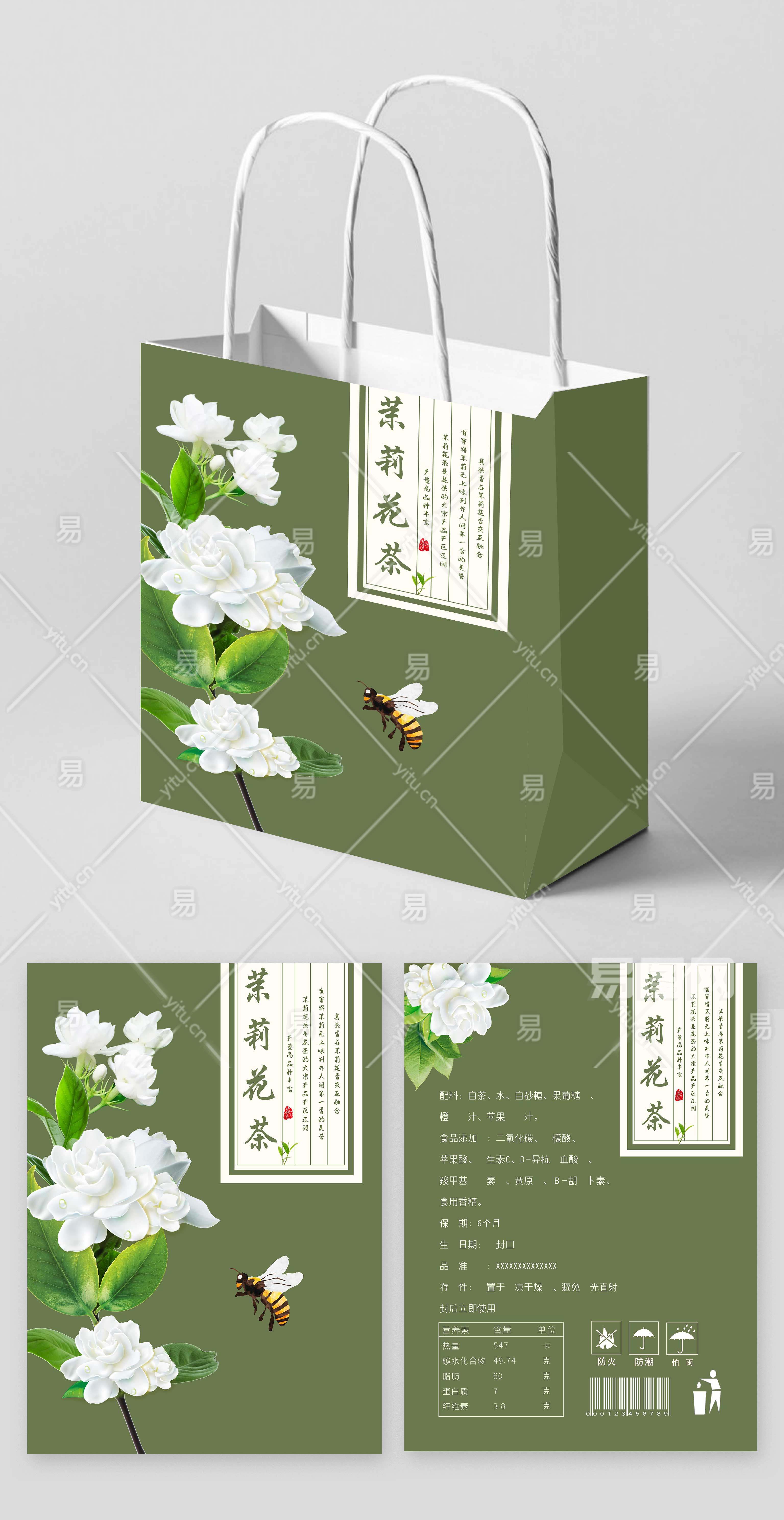 绿色传统中国风茉莉花茶饮品宣传包装手提袋茉莉花茶包装