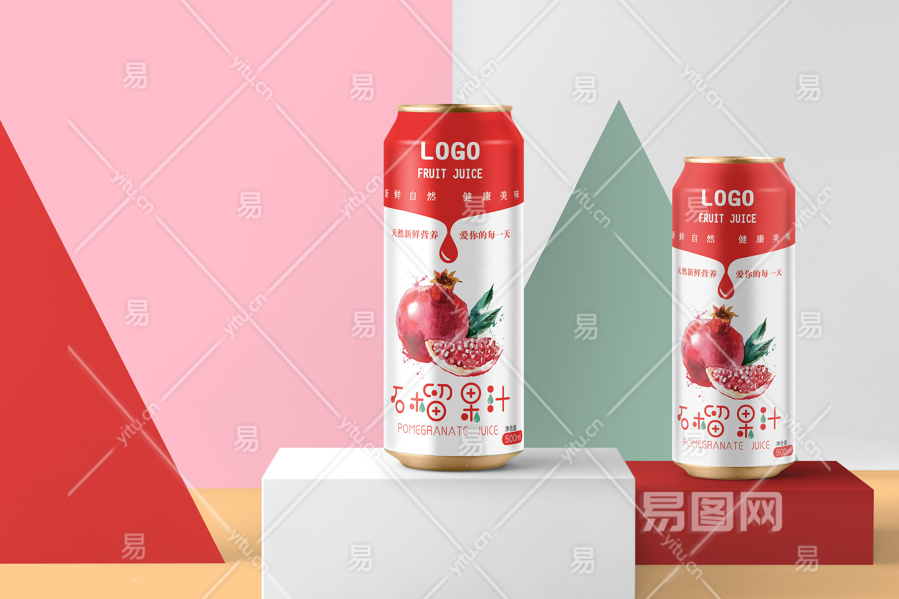 红色石榴果汁易拉罐包装