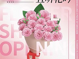 粉色弥散风鲜花店新店开业海报